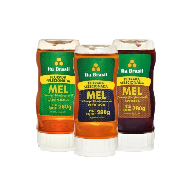 And the Ita Brasil Flip Top Aroeira Flowering Honey 280g, extracted from the tree's nectar and molasses, has a very dark amber color, a less sweet flavor, contains a high fructose index and low acidity, which makes it a honey with low crystallization. It goes well with cheese and in the preparation of invigorating teas.